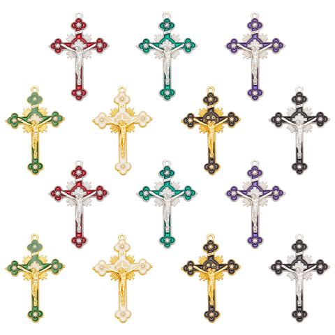 PandaHall placcato oro per bambini 1 scatola 21 pz 7 colori grandi in lega di zinco ciondoli in smalto crocifisso ciondoli a croce