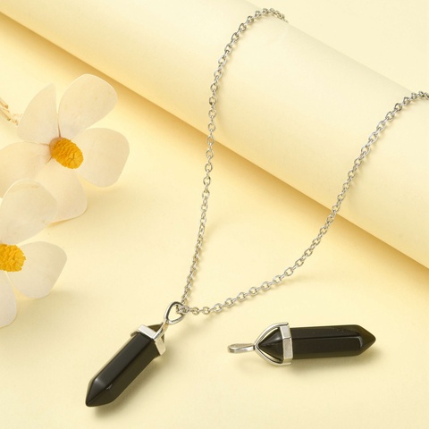 Pandahall per bambini 2 pezzi ciondolo esagono naturale in ossidiana nera ciondoli terminali a doppia punta ciondoli proiettili sfaccettati alla moda